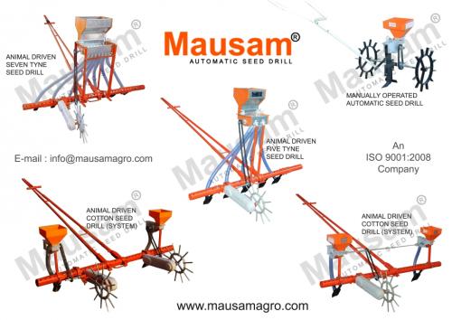 Rajkot Gujarat India Based Company MAUSAM AGRO PVT.LTD Manufacturing & exporting Seed Drill & Seed Cum Fertilizer Drill as Tractor Driven, Mini Tractor Driven, Power Tiller Driven, Animal Driven and Manually Driven.